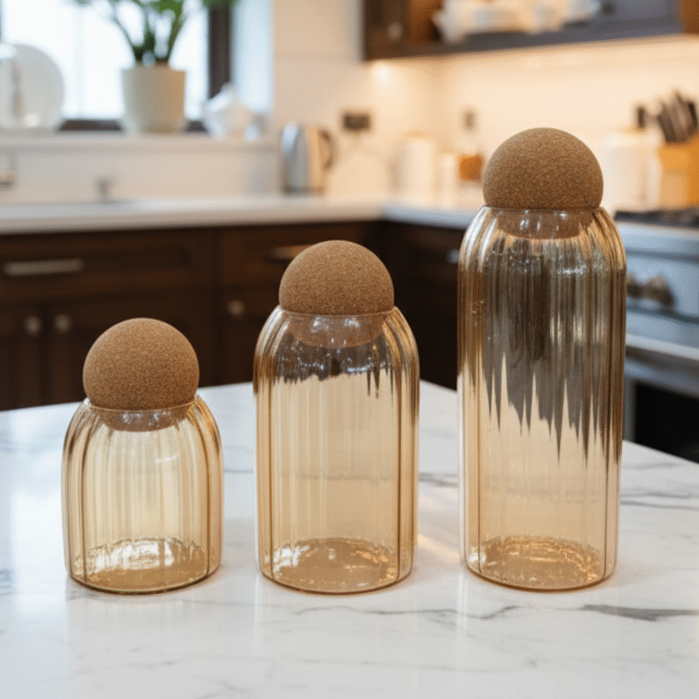 Discover our Amber Glass Storage Jars with Cork Lid (Set of 3) – where elegance meets everyday functionality. Made from premium-quality amber glass, these jars bring a warm, sophisticated touch to any space while keeping your essentials fresh, secure, and beautifully organized.