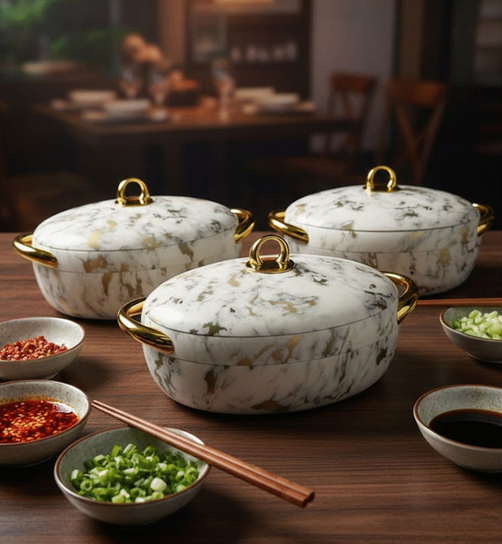 “Elevate your dining experience with our Premium Insulated Hot Pot Set. Engineered with advanced thermal technology, these casseroles are designed to bridge the gap between the kitchen and the dining table. Whether it’s a family brunch or a formal dinner party, our Hot Pots ensure your rotis remain soft and your curries stay at the perfect serving temperature for hours. The interior is crafted from high-grade stainless steel, ensuring hygiene and durability, while the exterior boasts a contemporary design that complements any modern table setting. A perfect blend of functionality and elegance for every home.”