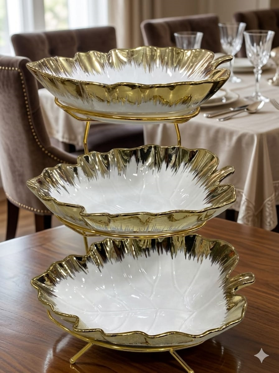 Redefine Your Dessert Experience Make a statement at your next dinner party or high-tea gathering. Our Luxury 3-Portion Dessert Set is designed for those who appreciate the finer things in life. Whether you are serving decadent truffles, colorful macarons, or traditional sweets, this set provides a curated display that captivates your guests before they even take their first bite.