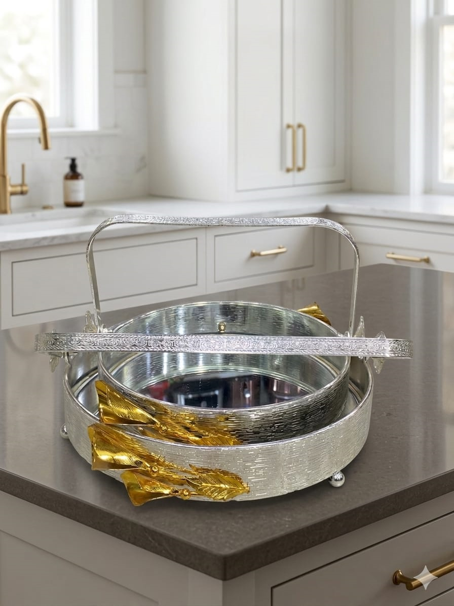 This basket is not only practical but also adds a modern touch to your kitchen or dining area. It can also be used for organizing snacks, utensils, or small household items. Easy to clean and lightweight, the steel basket is perfect for everyday use and helps keep your space organized and clutter-free.