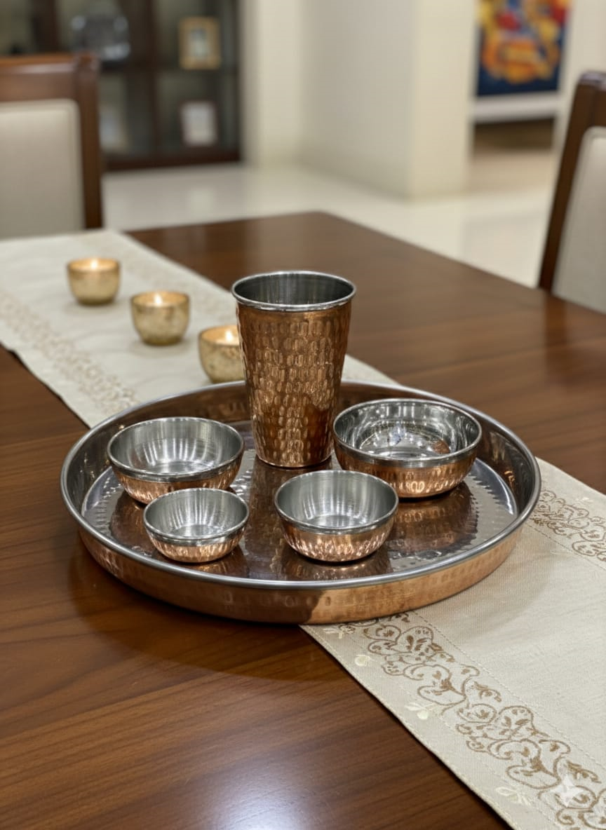 Traditional Copper Steel Thali Set – Elegant & Durable